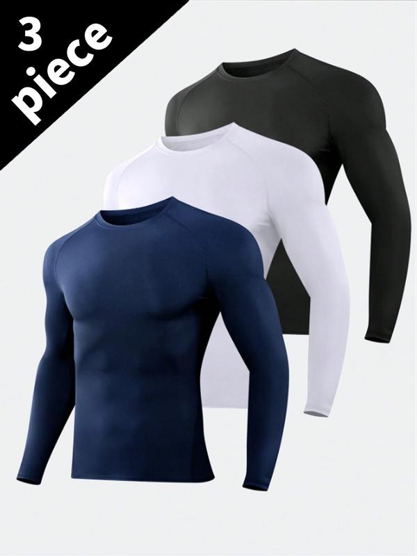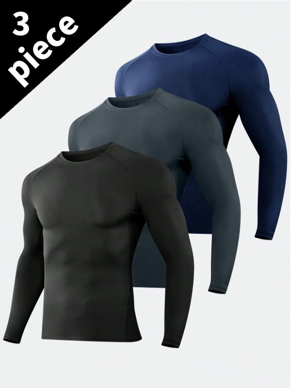 3 Pack Men's Slim Shape Top Sports Fitness Long Sleeve
